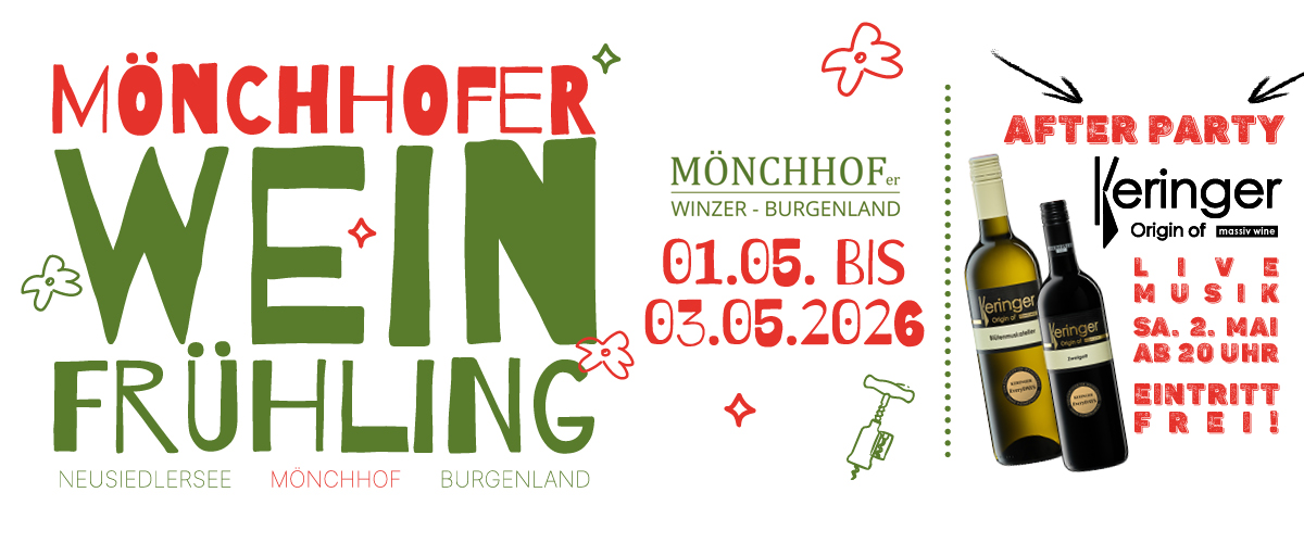 Jungweinfrühling 01. bis 03. Mai 2026 Nach dem Fest ist vor dem Fest! Wir möchten die Gelegenheit nutzen, um alle Weinliebhaber bereits jetzt herzlich zum Jungweinfrühling in Mönchhof vom 01. bis 03. Mai einzuladen. Was erwartet euch am Mönchhofer Weinfrühling 2026: Freitag 01. Mai 2026: 14:00 bis 20:00 Uhr: Offene Kellertüren in Mönchhof – unsere [...]